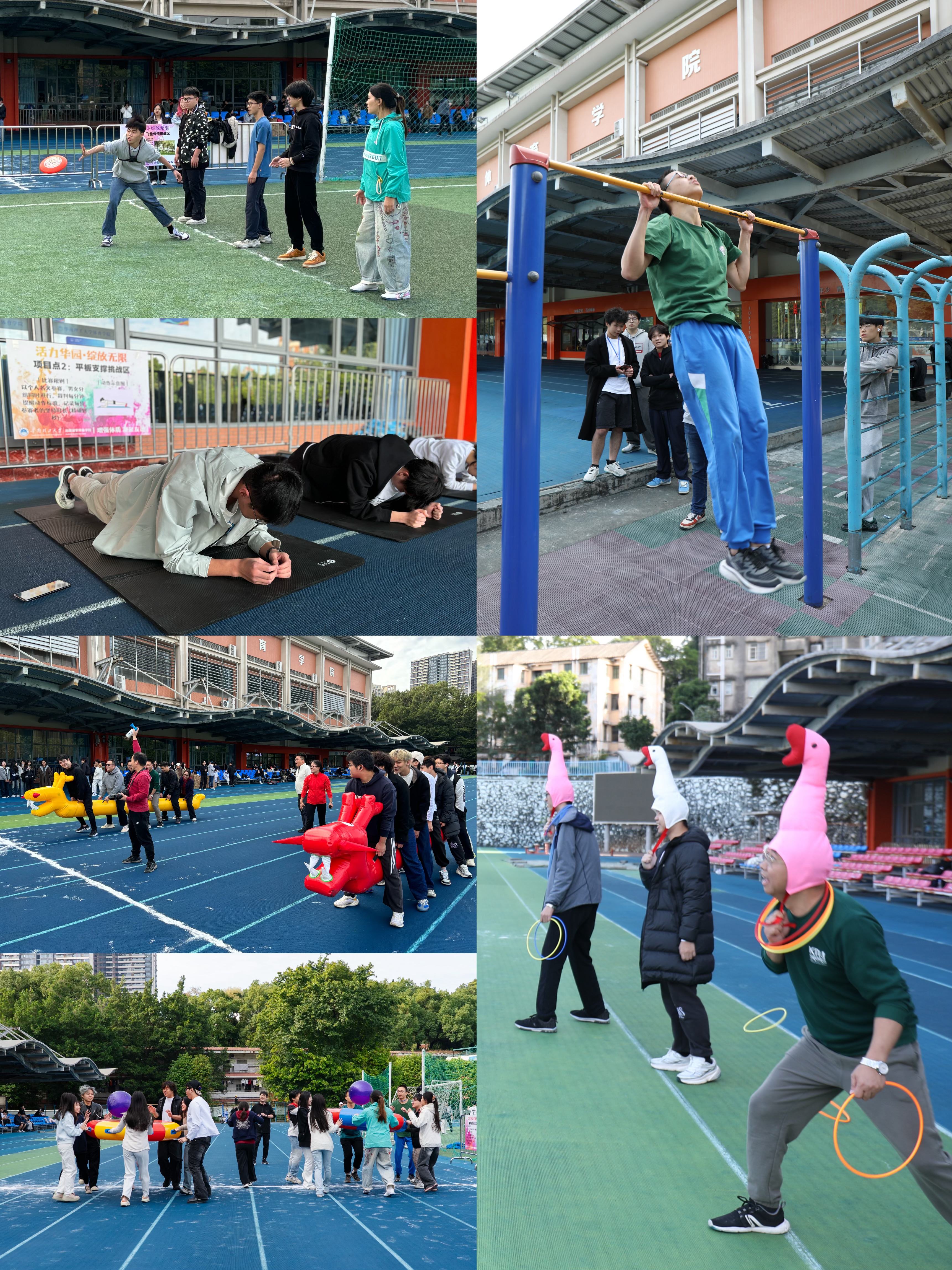 为丰富我院学生业余生活,增强身体素质和团队意识,搭建师生互动桥梁,11月20日,学院在五山校区西区运动场举行2025年出国留学培训项目趣味运动会。师生积极参与,携手共乐,共同开启了一场既有趣味又充满温情的互动体育活动。