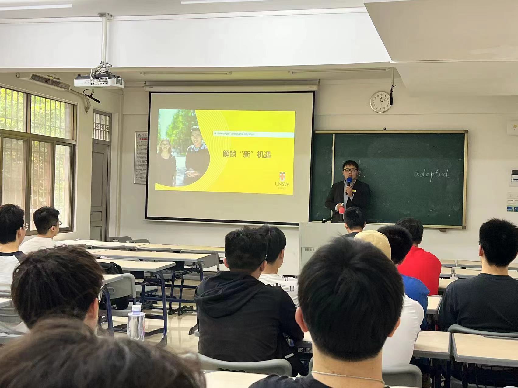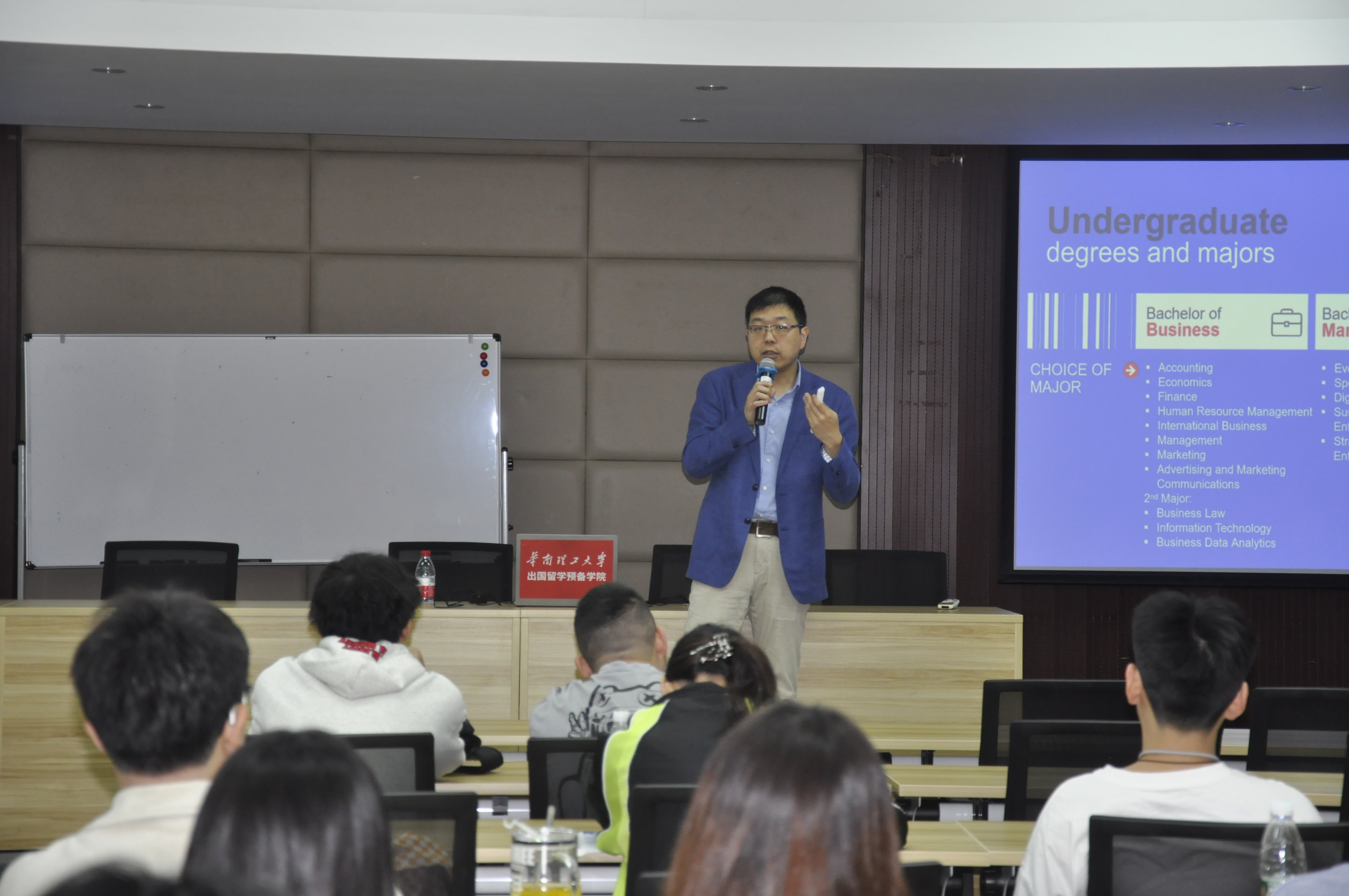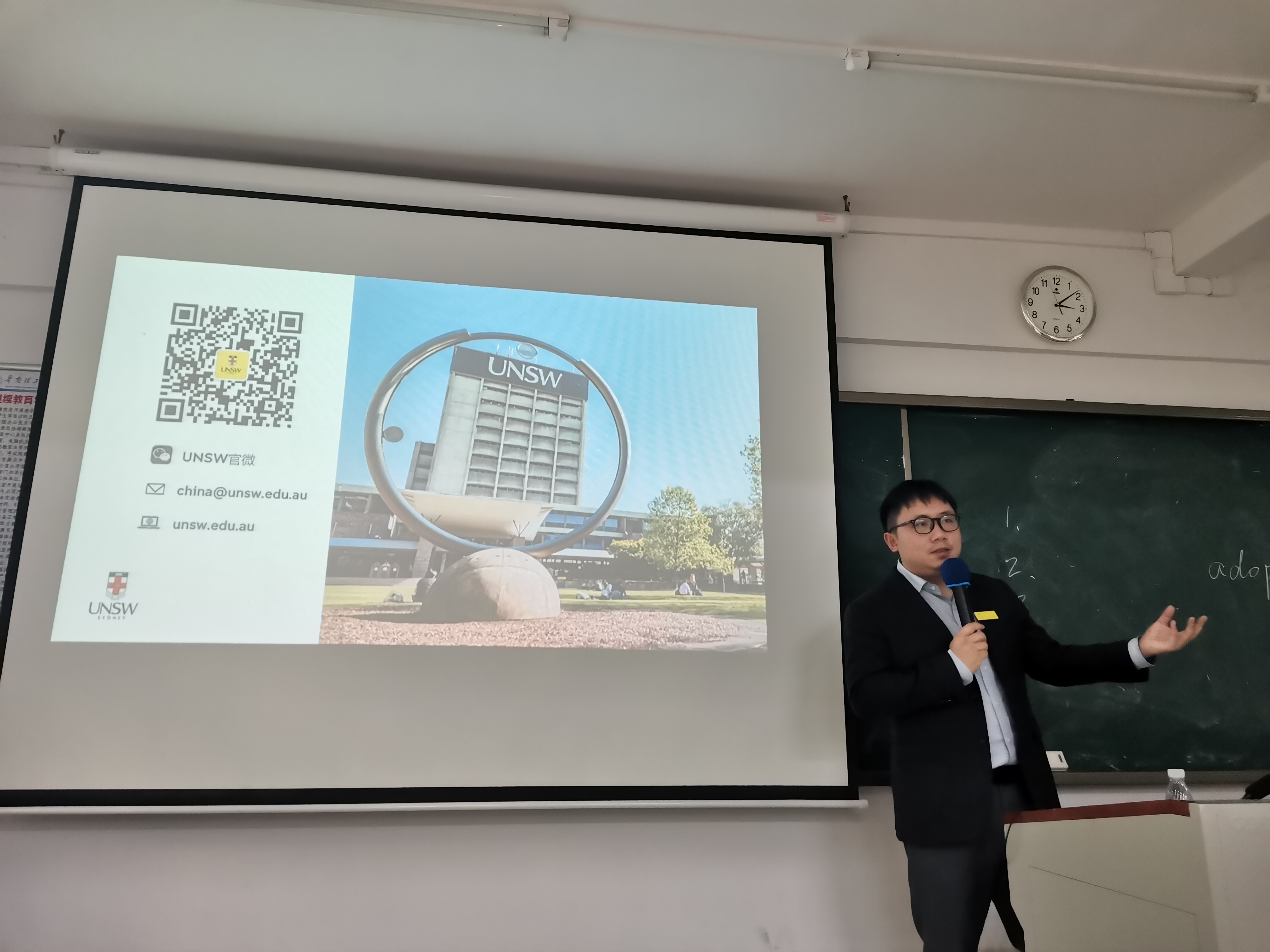 10月27日下午,澳大利亚新南威尔士大学(The University of New South Wales,简称UNSW)宣讲会在学院17202教室举行。此次宣讲会的主讲人是来自校方中国办事处的代表牟志强先生。我院新南威尔士大学本科预科项目的学生以及相关教师出席了此次宣讲会。