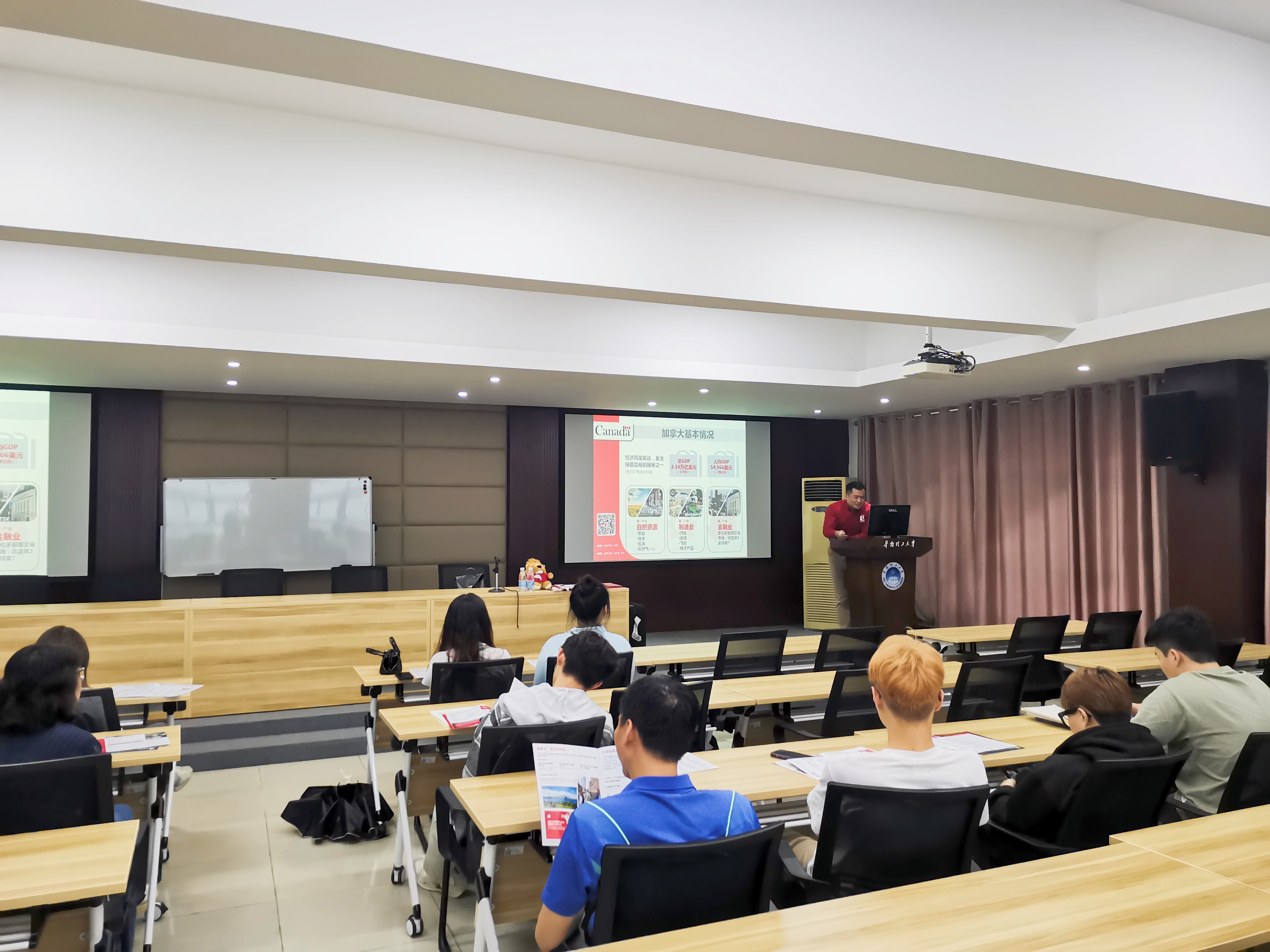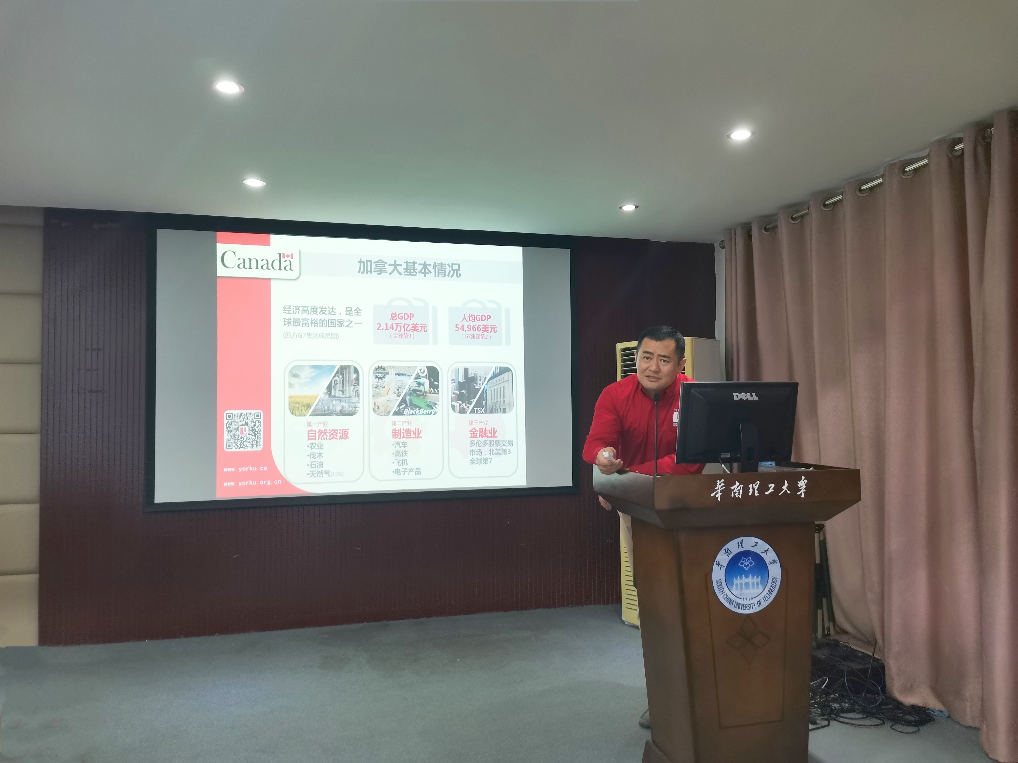 10月19日下午,加拿大约克大学宣讲会在我院908报告厅举行,由约克大学曾祎熙老师主讲。他首先向学生们介绍了约克大学在地理位置、专业排名、实习就业等方面的优势,随后播放了一段视频,让学生们对约克大学有更直观的了解。接着,他对约克大学与华工合作项目进行了详细的讲解和答疑。最后,曾老师现场提问,同学们积极抢答并就升学规划等问题与老师踊跃互动交流。
